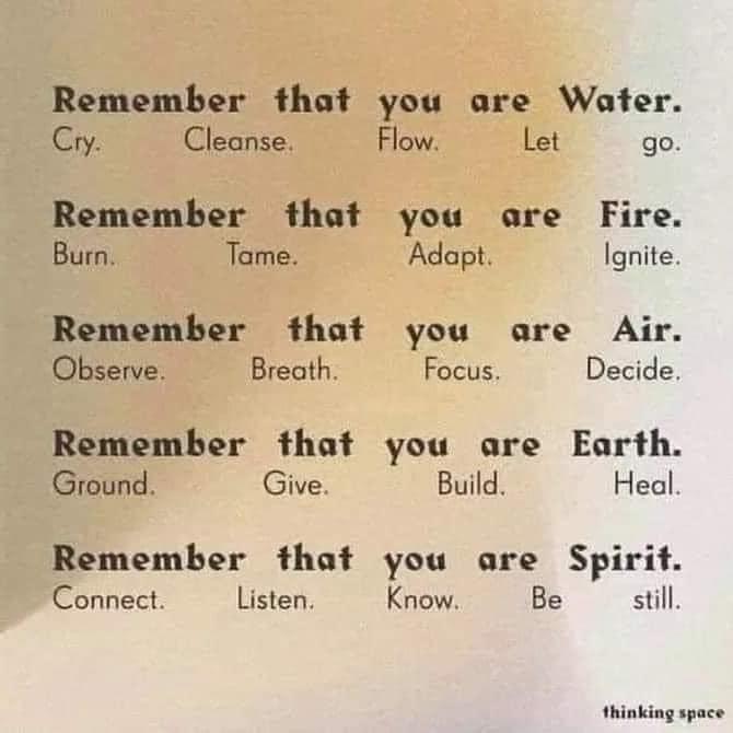 The conversation I am offering is not an attempt to explain the natural world as they were trying to do in those ancient times. Modern chemistry offers far more than four or five basic elements to understand the natural world. The Periodic Table of Elements is more accurate and helpful in that endeavor. I, on the other hand, am looking inward.