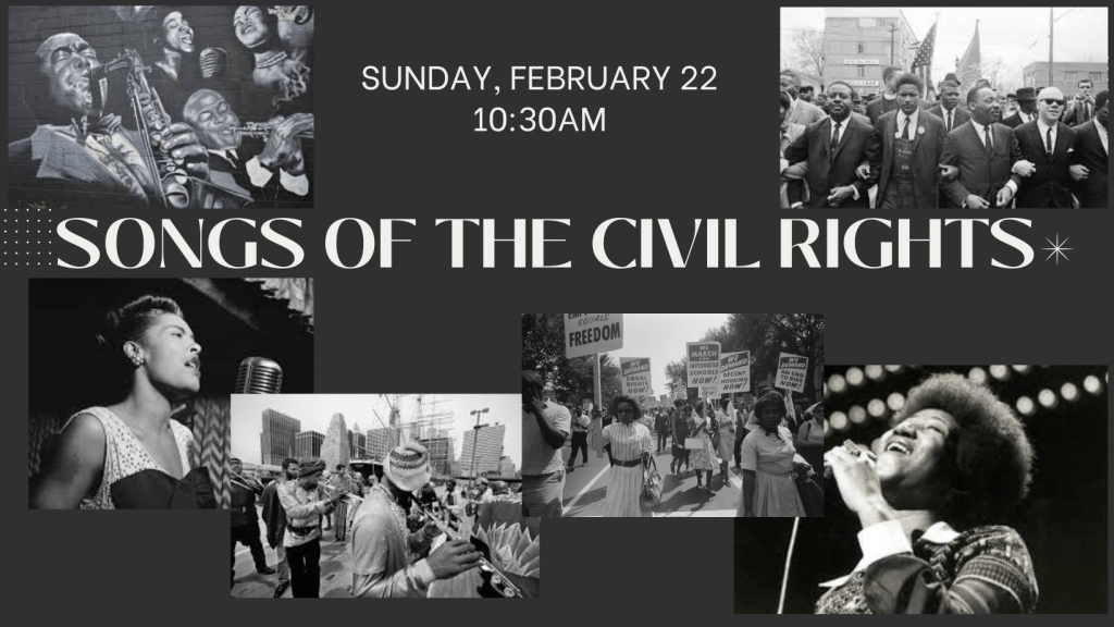 We had a hard time limiting ourselves to the songs we are featuring this morning. Many songs were given a featured place by many people in the movement. There are numerous ‘unofficial anthems’ of the movement. It’s heartening, I think, to have so many songs lifted up as important. It is a testament to the importance of music to the Civil Rights movement.